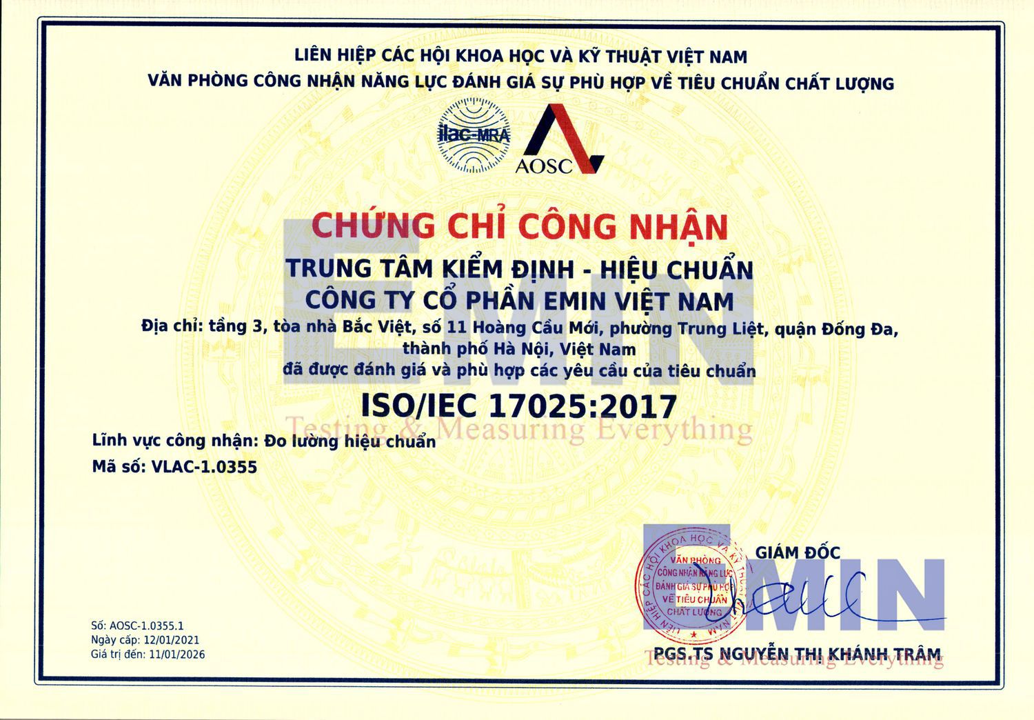 Cùng với dịch vụ sửa chữa, EMIN Việt Nam cũng cung cấp dịch vụ Kiểm định - hiệu chuẩn tại Trung tâm Dịch vụ kiểm định-Hiệu chuẩn-Sửa chữa thiết bị đạt chuẩn ISO17025. Quý khách có thể tham khảo thêm tại đây